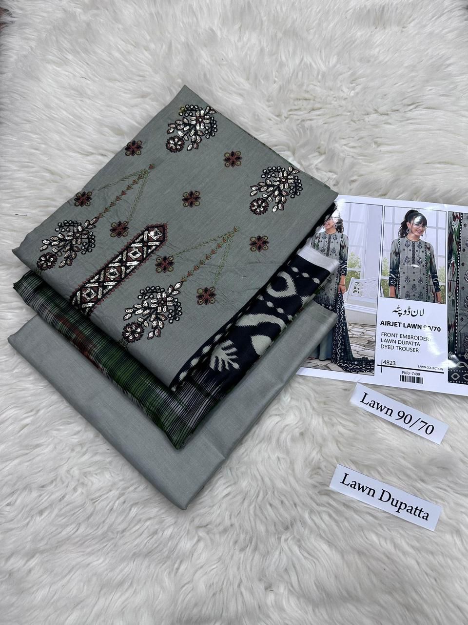 Airjet Lawn 3-Piece Unstitched Suit – Front Embroidered | Elegant Grey
